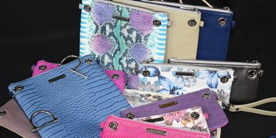 All purses include 2 pouches: a wristlet and crossbody, as well as straps for both. Either pouch can be used individually or combined in a variety of ways to create your own custom looks.